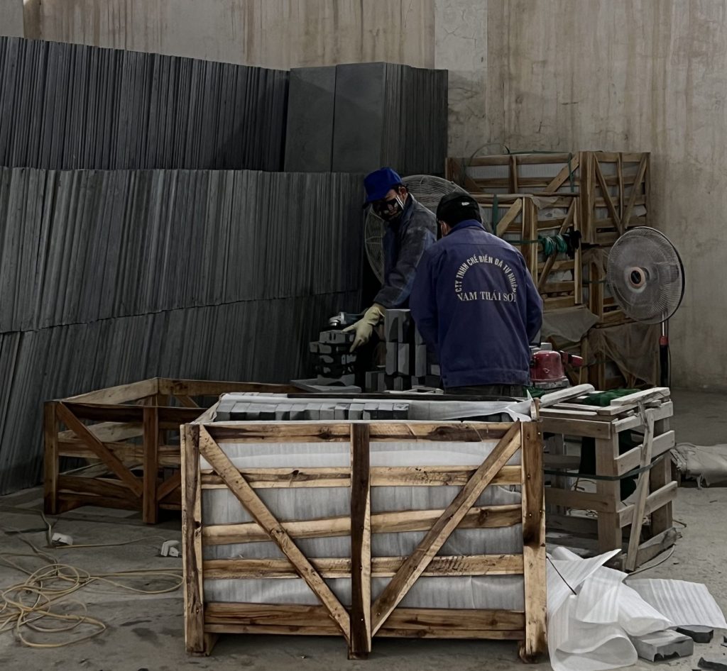 Với quy trình khép kín từ cắt – tạo hình – xử lý bề mặt – kiểm định, mọi sản phẩm đều được kiểm soát nghiêm ngặt ở từng công đoạn. Đội ngũ kỹ thuật viên giàu kinh nghiệm đảm bảo mỗi viên đá hoàn thiện đạt độ bền, màu sắc và thẩm mỹ tối ưu.